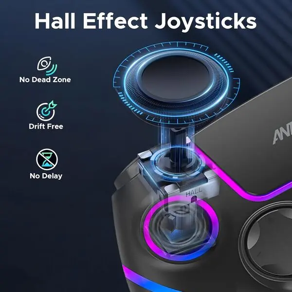 Precision Hall Effect Triggers & Joystick : Experience next-gen accuracy and durability with magnetic Hall Effect sensors that eliminate stick drift and wear, delivering ultra-smooth, responsive, and consistent control for FPS, racing, and action games — built for long-lasting performance and competitive gaming precision