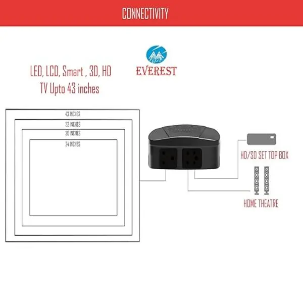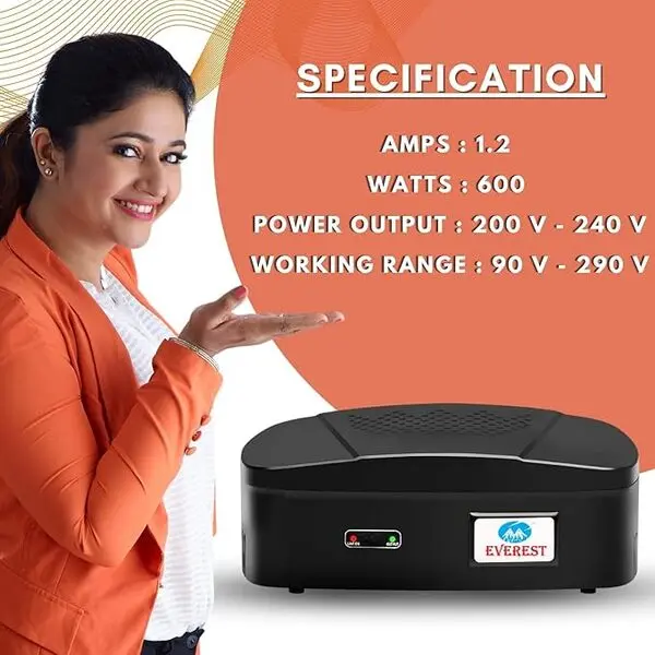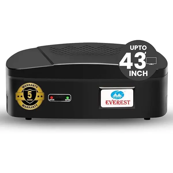 Everest ENT 60-N New Model ABS Body Voltage Stabilizer Used Upto 43 Inches LED TV + Home Theater + Set Top Box Table Top & Wall Mountable (Working Range : 90 V to 290 V) (Black Color)