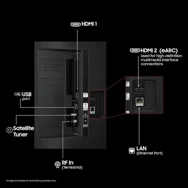 | Special Feature | Samsung Knox Security | Voice Search Remote Control | HDR | Samsung TV Plus | Samsung Tizen OS |