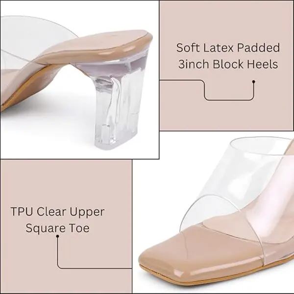 Comfortable & Trendy Fit - Designed with cushioned soles and sturdy heels, these transparent heels offer all-day comfort for office or events.