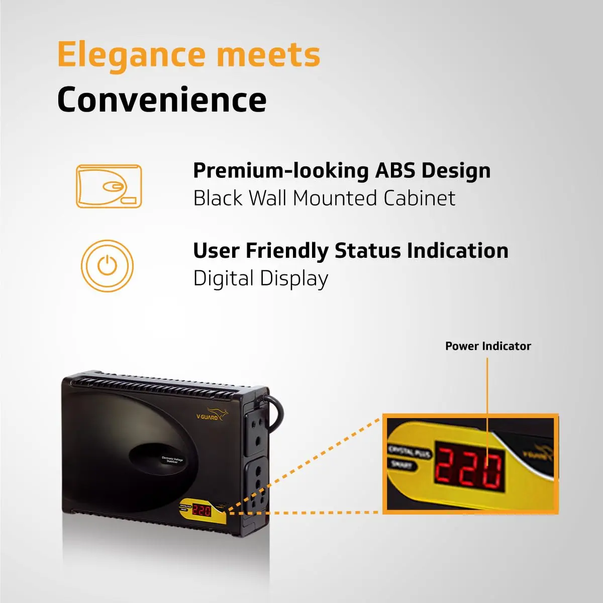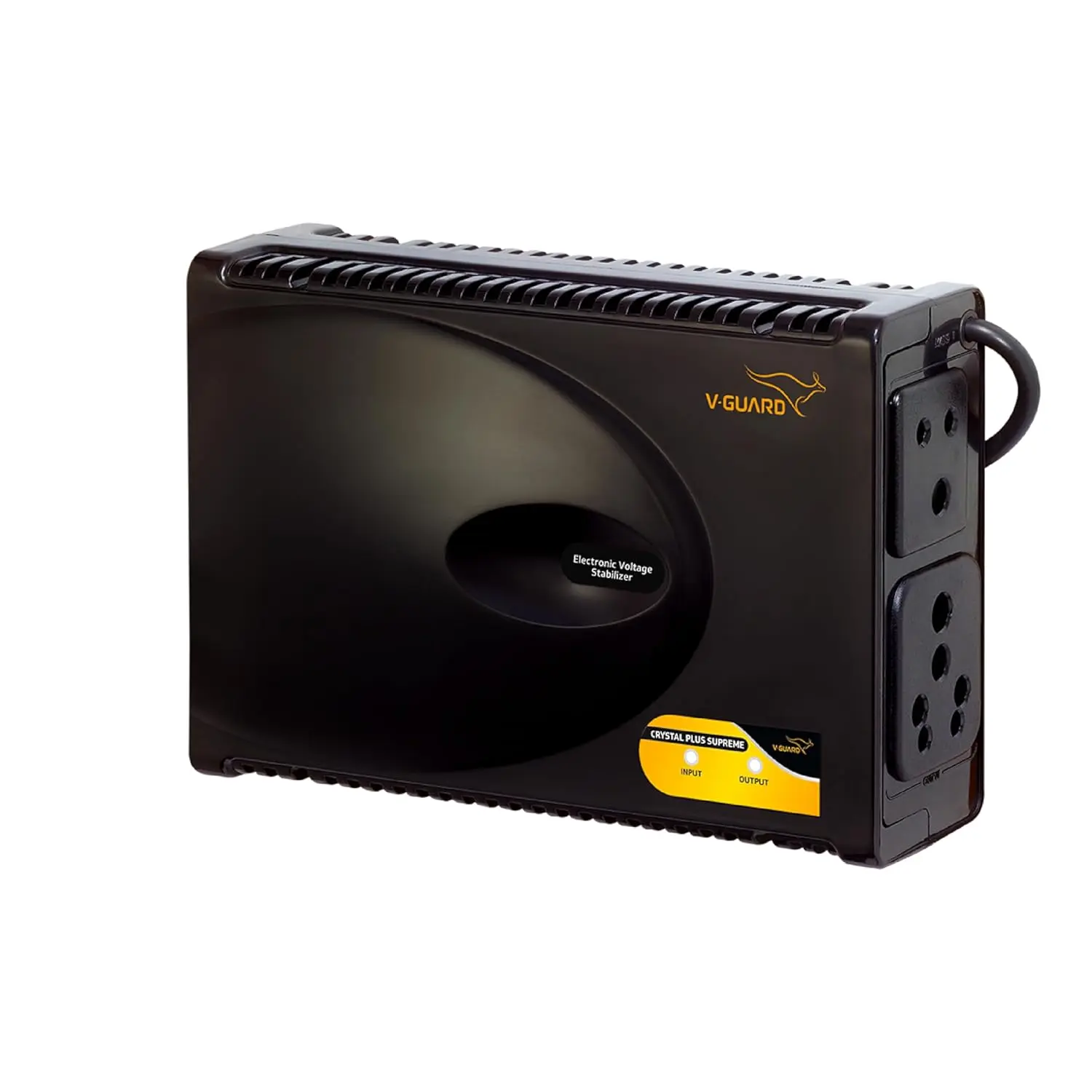 V-Guard Crystal Plus Supreme TV Stabilizer | Applicable for Smart TV's up to 140cm(55)+Set Top Box,Home Theatre/Gaming Console | 3 Ampere Capacity | Bi-Colour LED Display| 3 Year Warranty | Black