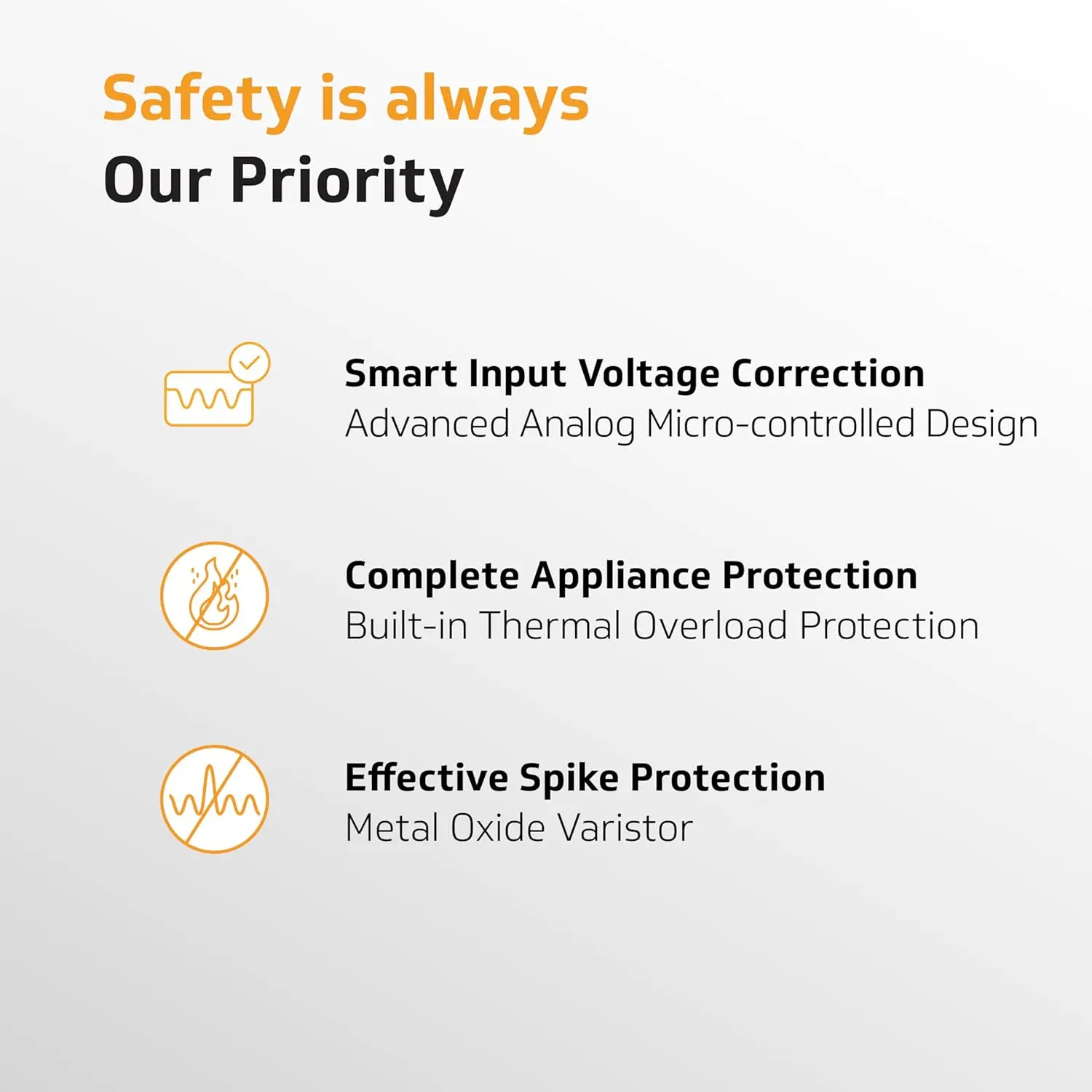 Graphical LED Display: Monitor the performance of Crystal Plus Supreme with ease using the convenient LED indicator. It provides real-time information on the input and output performance of the stabilizer, allowing you to stay informed about the power supply status
